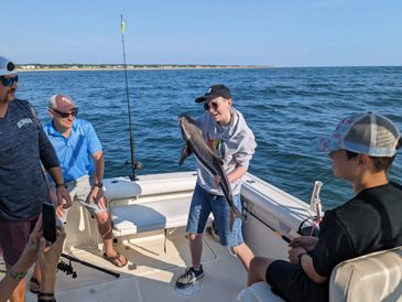 Inshore Fishing in Virginia Beach is world renowned! Cobia and Red Drum being the spotlight for many anglers both local and visiting. These fish are some of the largest inshore species you will find and they fight hard! Cobia and Red drum during the summer are hunted by a Sight-fishing. A technique where we search for these fish on the surface and cast using bucktails and live bait. When weather doesn't allow or in the fall we typically spend more time bottom fishing. Other inshore species that are of note include Spanish mackerel, bluefish, spadefish, tautog, speckled trout, black drum and stripers. Mid June is the Absolute best time for inshore fishing in Virginia Beach. A 6 hour inshore fishing trip in Virginia beach will is the best way to target cobia, red drum and Spanish mackerel. 8 hour inshore fishing trip is the grand slam where we can hit some closer shipwrecks for spadefish & flounder and then make our way back for cobia, Spanish mackerel and bluefish.